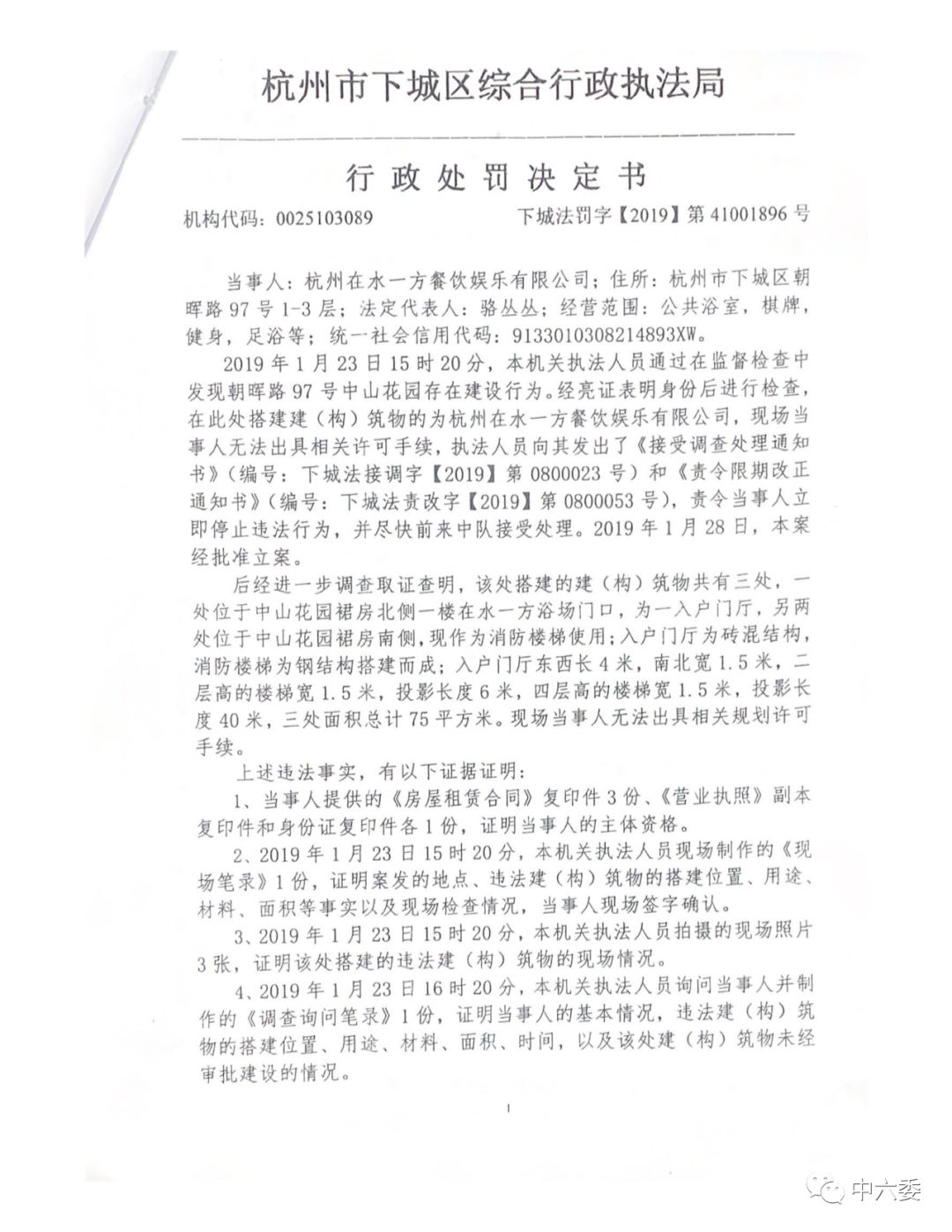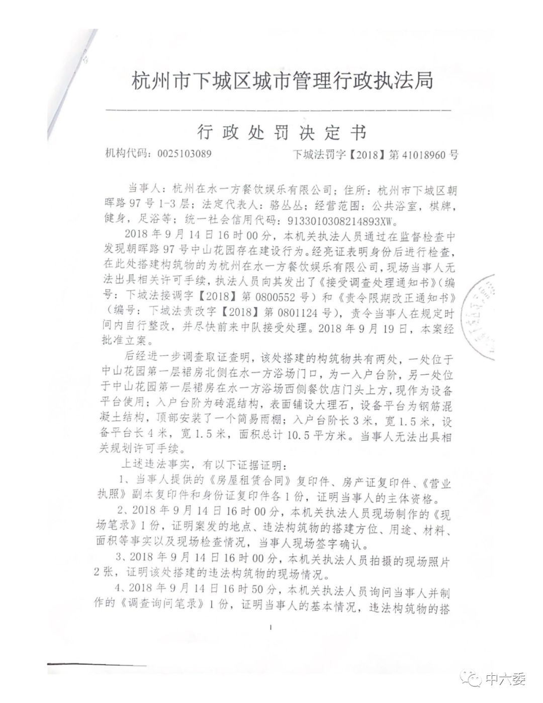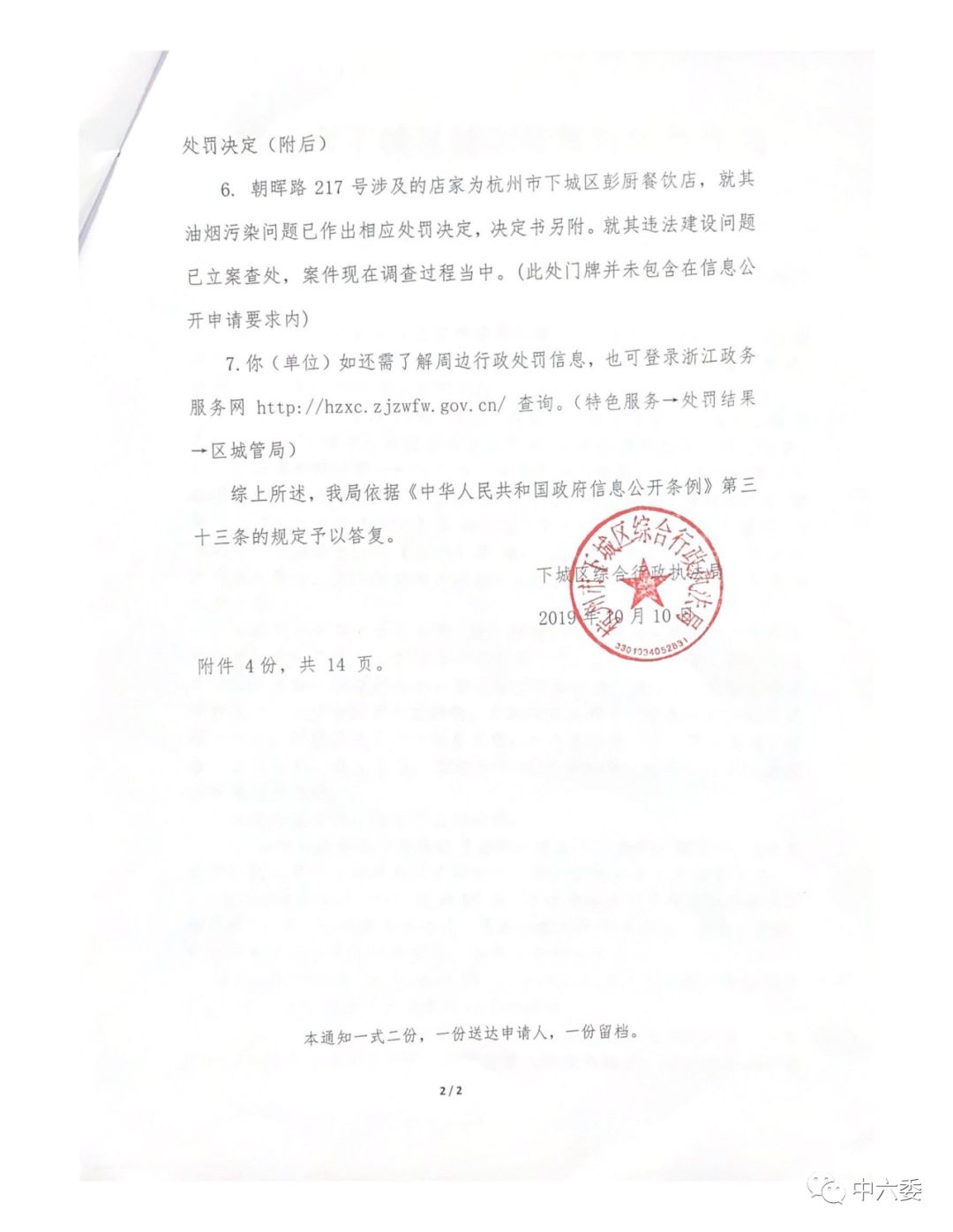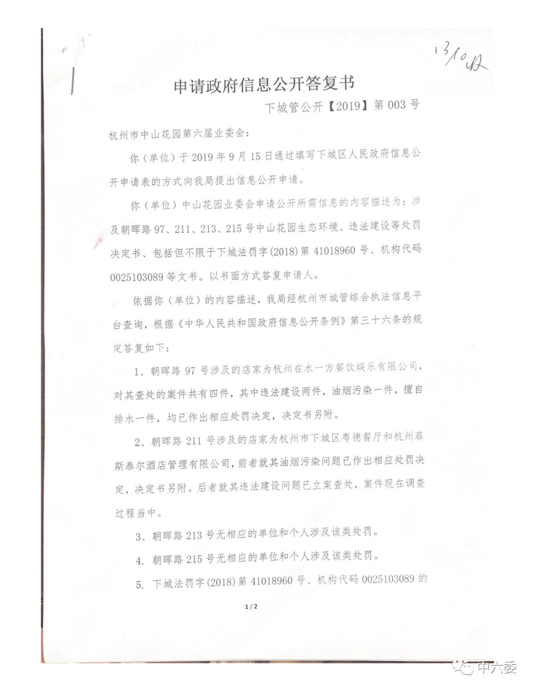 杭州市中山花园部分违建、排水、油烟审批、处罚信息公开情况