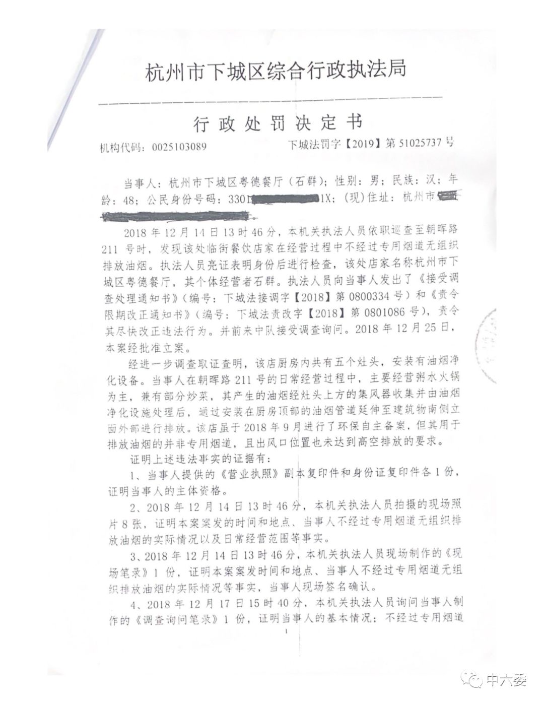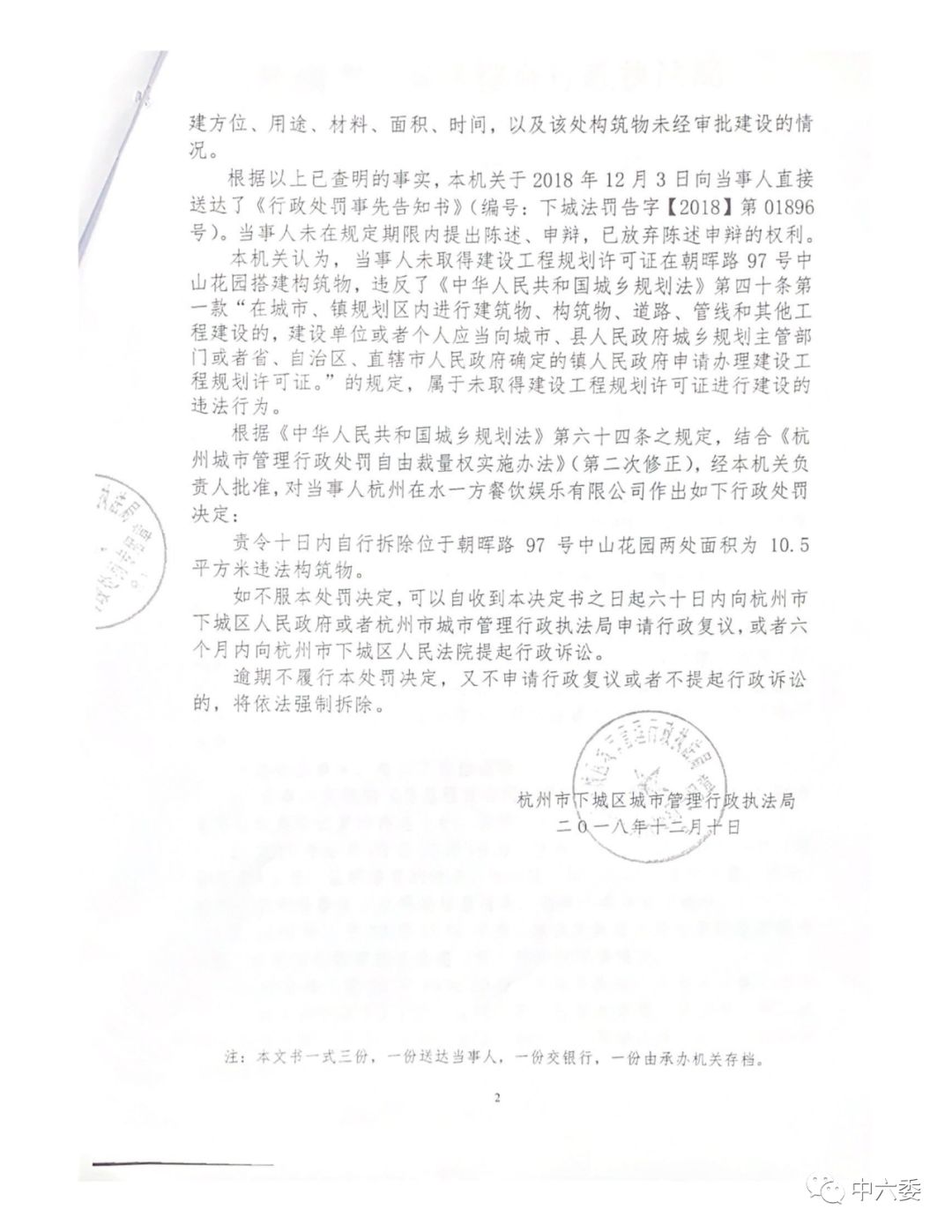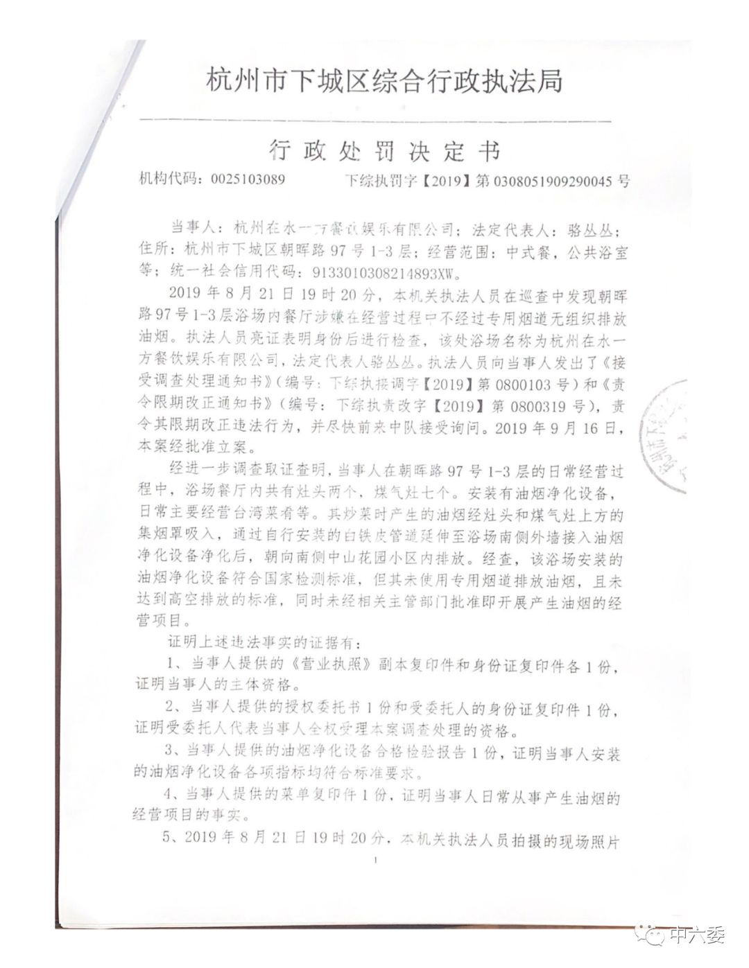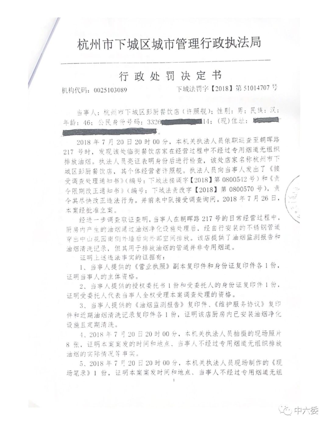 杭州市中山花园部分违建、排水、油烟审批、处罚信息公开情况
