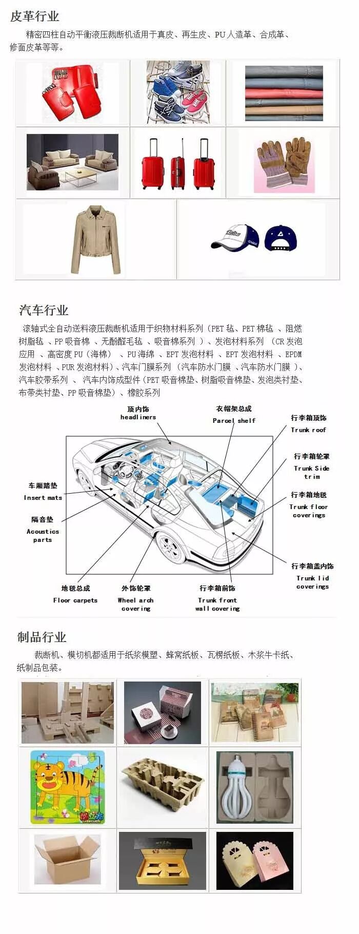 适用行业:汽车内饰、吸塑、珍珠棉,海绵、箱包、塑胶制品业等等大型刀模、片材材料行业。