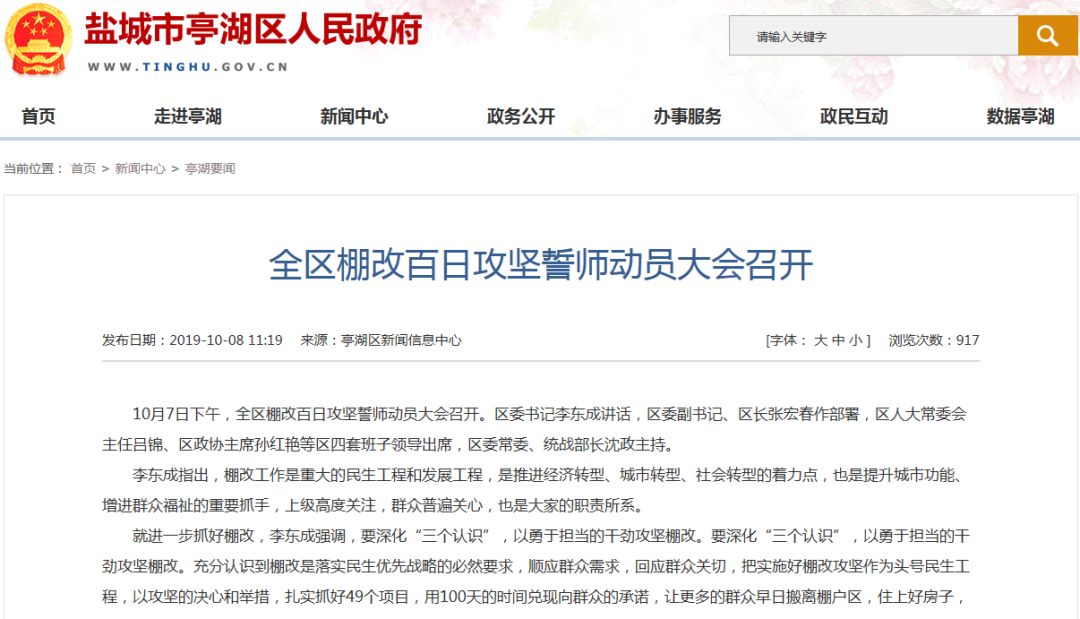亭湖全区棚改百日攻坚誓师动员大会召开。