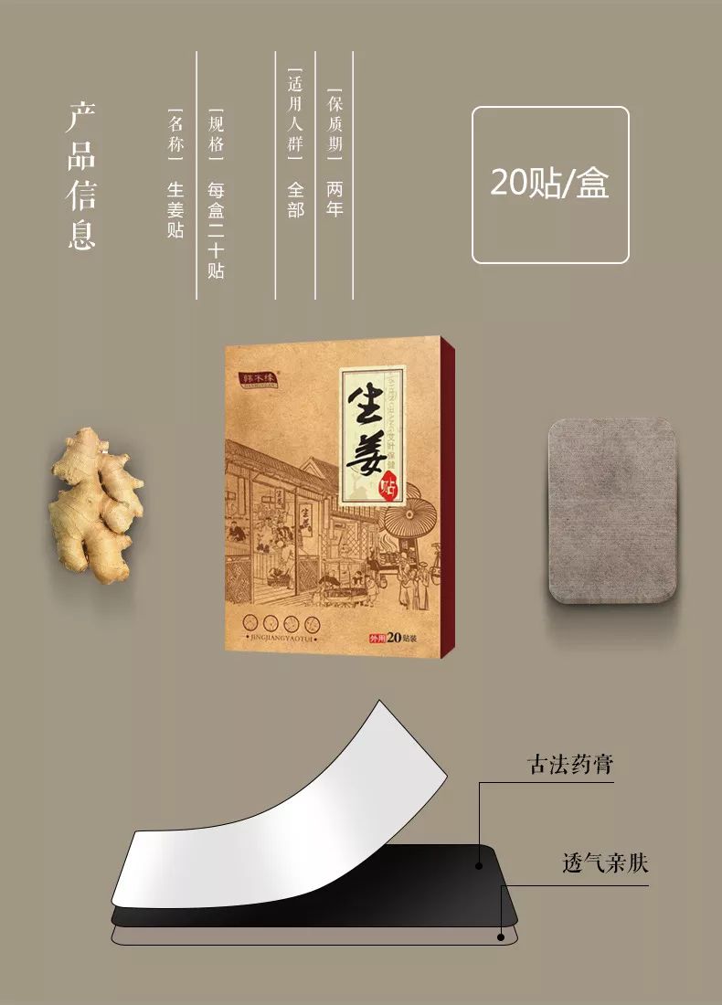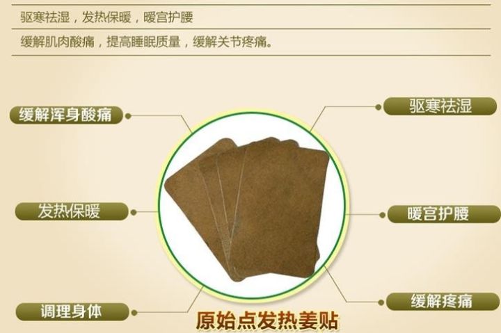 2)适合所有阳虚人群,或者阴阳两虚、尤其是腹部受凉、痛经、妇科炎症、月经不调、腰腿疼痛、肩周酸痛、关节受寒以及手术过后身体虚寒的人群,通过姜贴独特的持续热能,可有效缓解并消除经期腹痛、腰肢酸痛和手脚冰凉等症状,使气血充盈,正气旺盛,长期使用可养颜保健。是必备的具有保健功能的日常用品,顾客认可率极高。