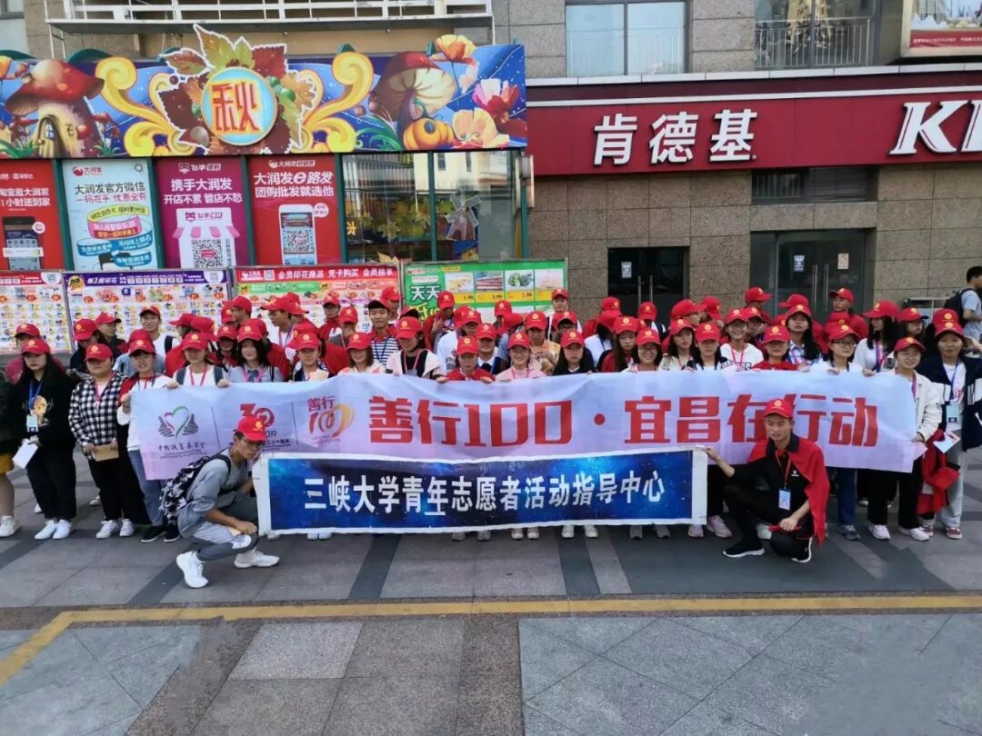 看那些穿戴着红色披风的便是这次参加善行一百活动的同学们!即使渐渐入冬,宜昌的下午还是有丝炎热,但他们依然前行着,开启了2019年善行一百的篇章。