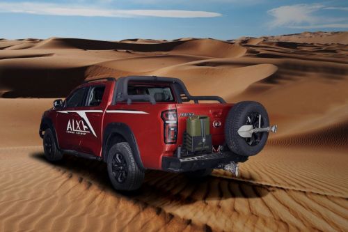 发布会现场,长城还带来了一款越野皮卡的改装版本,同时搭载专业越野减震器、防脱圈轮辋、拓展尾门龙门架等,可以实现双油箱、双备胎安装,货箱专用储物盒用于猴爬杆、工兵铲、防滑块、拖车钩、气压表、灭火器、充气泵等沙漠越野装备的存放,越野属性有了进一步提升。