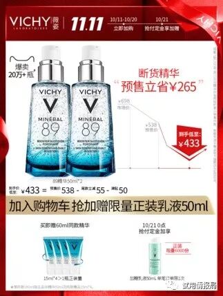 薇姿89火山能量瓶肌底液50ml*2,原价698元,促销活动价538元,付定金立减55,领50元独家券,券后【433元】包邮秒杀!