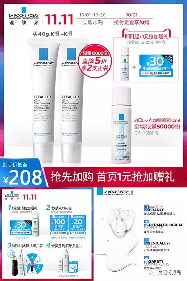理肤泉预售活动爆款1160元抢400元理肤泉清痘爽肤水