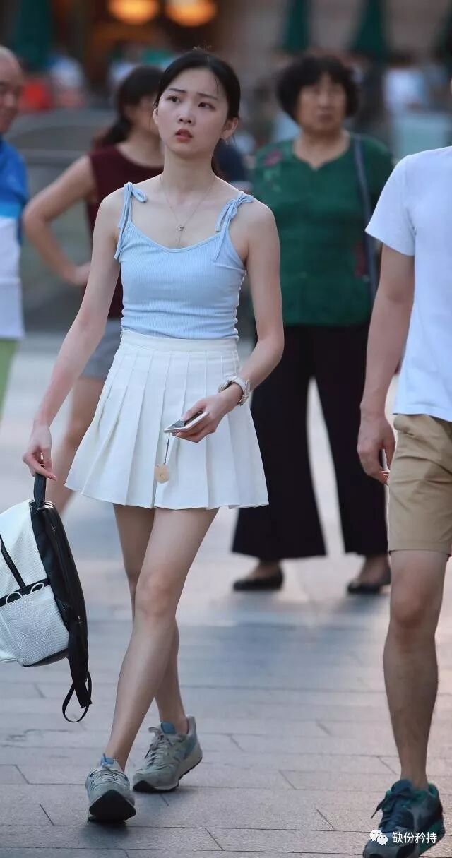 小姐姐不仅人长得漂亮,皮肤也是如雪般白净。小姐姐的身段很瘦,看她的大腿感觉非常的有美感,真是让人仰慕。脚上的黄白拼色帆布鞋更显出小姐姐的青春靓丽。