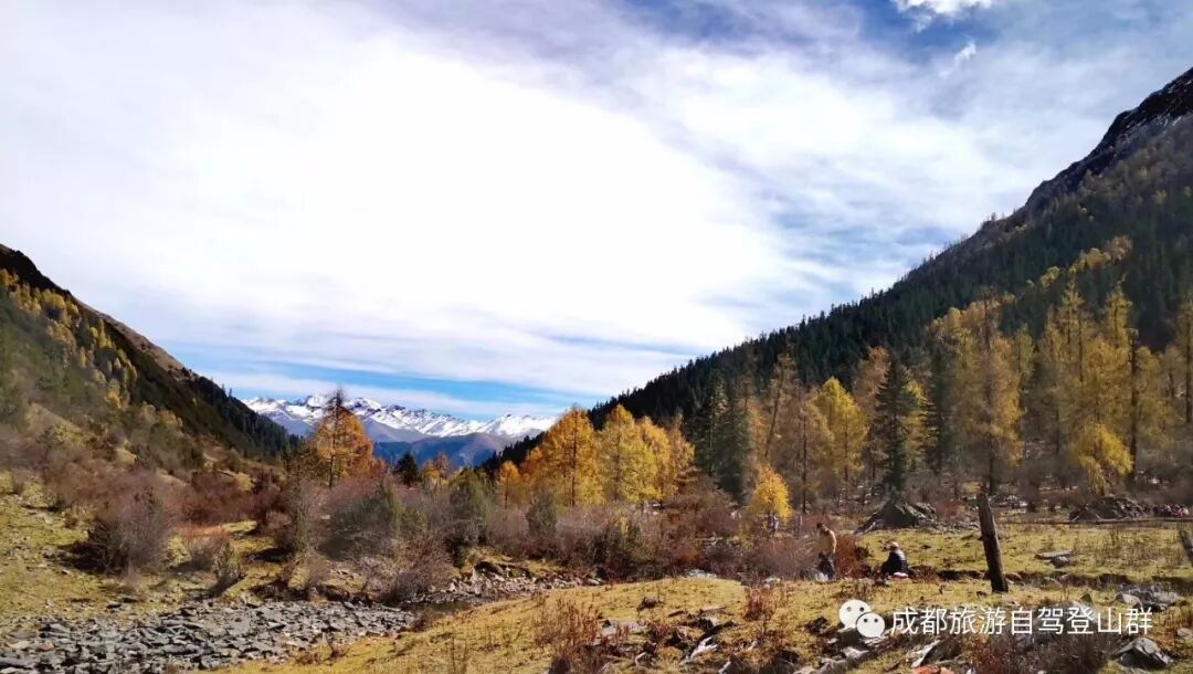 第二天;四姑娘山镇—锅庄坪—6km—打尖包—9km—大本营