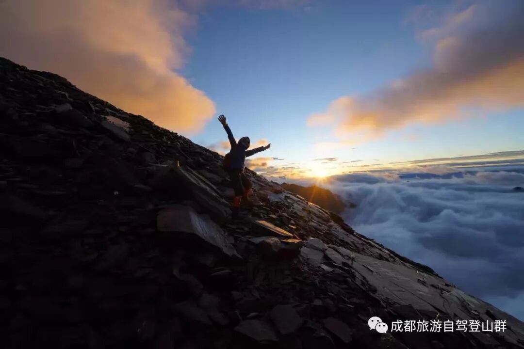(徒步时间大约10小时)凌晨4:00点早餐后出发,根据队员状态确定冲顶人员名单,在向导和协作的帮助下进行冲顶,状态好5个小时左右可以到达顶峰.庆祝留念后小心下撤,约需2-3个小时到达营地,大本营返回四姑娘山镇,返回成都结束本次四姑娘山登山活动;今日景点:峰顶美景、日出、高山草甸、高山灌木、牦牛群今日餐饮:早餐(大本营)、午餐(路餐自理)今日住宿:成都今日海拔:四姑娘山镇4300米——顶峰——四姑娘山镇3200米—巴郎山5040米—成都500米今日备注:大本营以下沿途均有手机信号温馨提示:返回成都正常时间为:19:00之前,(具体时间需根据队员下山速度、道路是否堵车,交通管制等不确定因素)建议提前预定或改签至第二天,带来不便还请谅解。