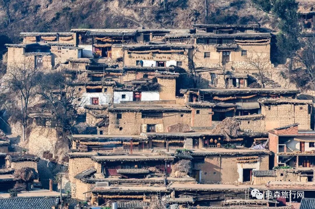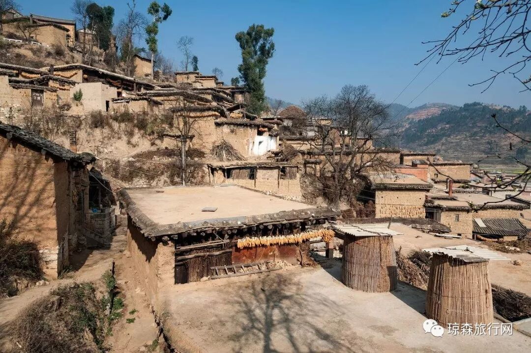 城子村是一座罕见的古村。该村是明广西府第五代士官昂贵的府地所在,整个村子依山而建,层层而上的土库房形成一级级台阶,最多的有17台,一般也在10台以上,不少土库房顶连缀在一起,形成数十米甚至上百米的平台,全村1000多间土库房,或首尾相衔,或左右毗连,将村户人家结为一体,其造型独特,实属罕见。城子村先是彝族先民白勺部的聚居区,之后大批汉族迁入,便形成了彝汉建筑风格的完美结合。