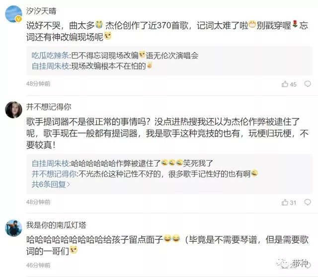 就像網友說的,周杰倫這輩子筆耕不輟,創作了快要370首歌,貫串人生二十年的歌詞逐一記著可太難了,不做好籌辦又要重現昔時的忘詞現場,被戲稱為“語無倫次演唱會”。