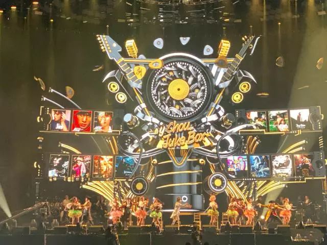 林更新在台下拍摄了演唱会的舞台照,荧幕里有周杰伦一路走来的成长记录,舞台上的舞蹈演员穿得五颜六色,确实很符合嘉年华的主题,十分欢乐。