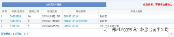 以及MV中录取男主的艺术学院Grassjelly,其实是一家叫仙草影像的公司,它的创始人是陈奕仁,正是周杰伦这支MV的导演。不过商标网显示,GRASS JELLY也已被一家公司和陈某在先申请注册。