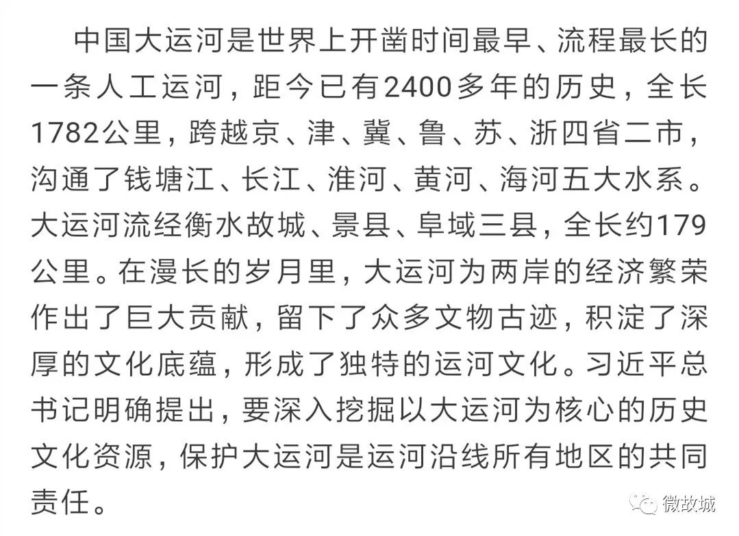 大运河贯穿故城县东部南北全境,蜿蜒75.1公里,是运河在县级境内纵贯最长的一段。