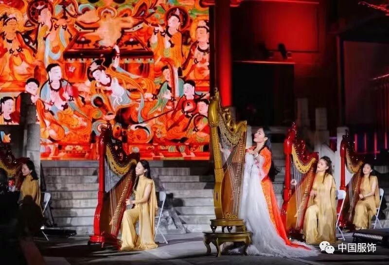 随后,来自文化和旅游部恭王府博物馆、中国纺织工业联合会、北京服装学院等主办单位的领导共同击鼓,宣布锦绣中华——2019中国非遗服饰秀开幕。伴随着优美的箜篌表演《丝路箜篌》、热情的藏戏《扎西雪巴》,“敦煌遗韵”服饰秀和“雅鲁藏布”服饰秀惊艳亮相。