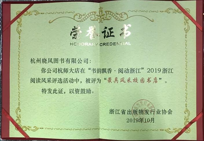 第五届“浙江书展”暨“2019宁波读书节”开幕,晓风书屋也受邀参展。期间“书韵飘香·阅动浙江”2019浙江阅读风采颁奖仪式举行,晓风书屋荣获多项殊荣!