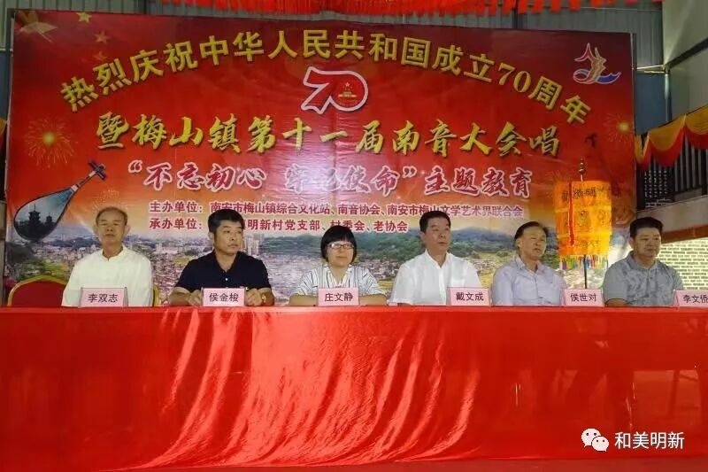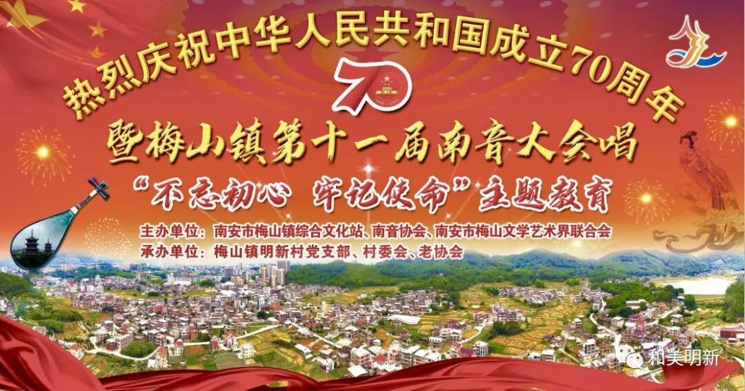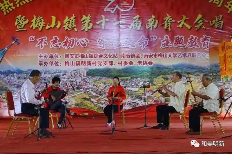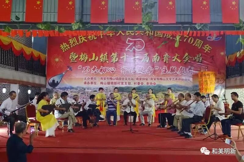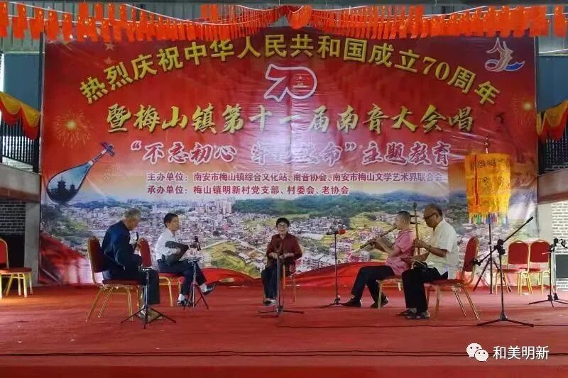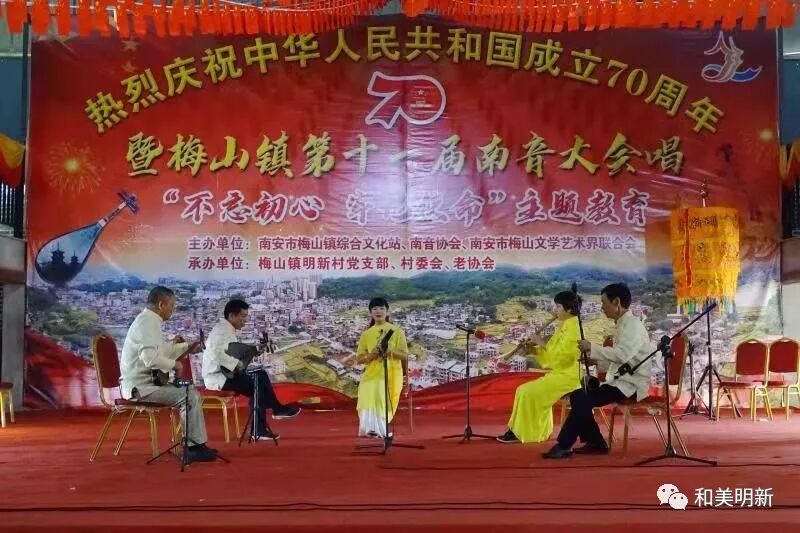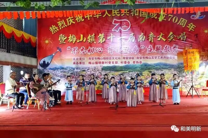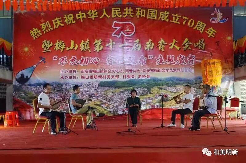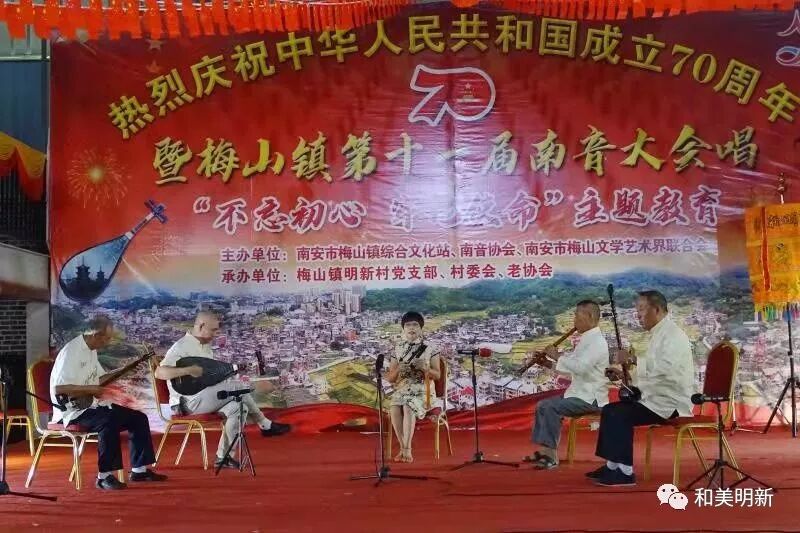 千年南音,尽显非遗魅力;古乐盛会,牵动浓浓乡情。2019年10月20日,在明新村聚缘山庄隆重举行庆祝中华人民共和国成立70周年暨梅山镇第十一届南音大会唱“不忘初心,牢记使命”主题教育活动,该活动主办单位:南安市梅山镇综合文化站、南音协会、南安市梅山文学艺术界联合会;承办单位:梅山镇明新村党支部、村委会、老协会。