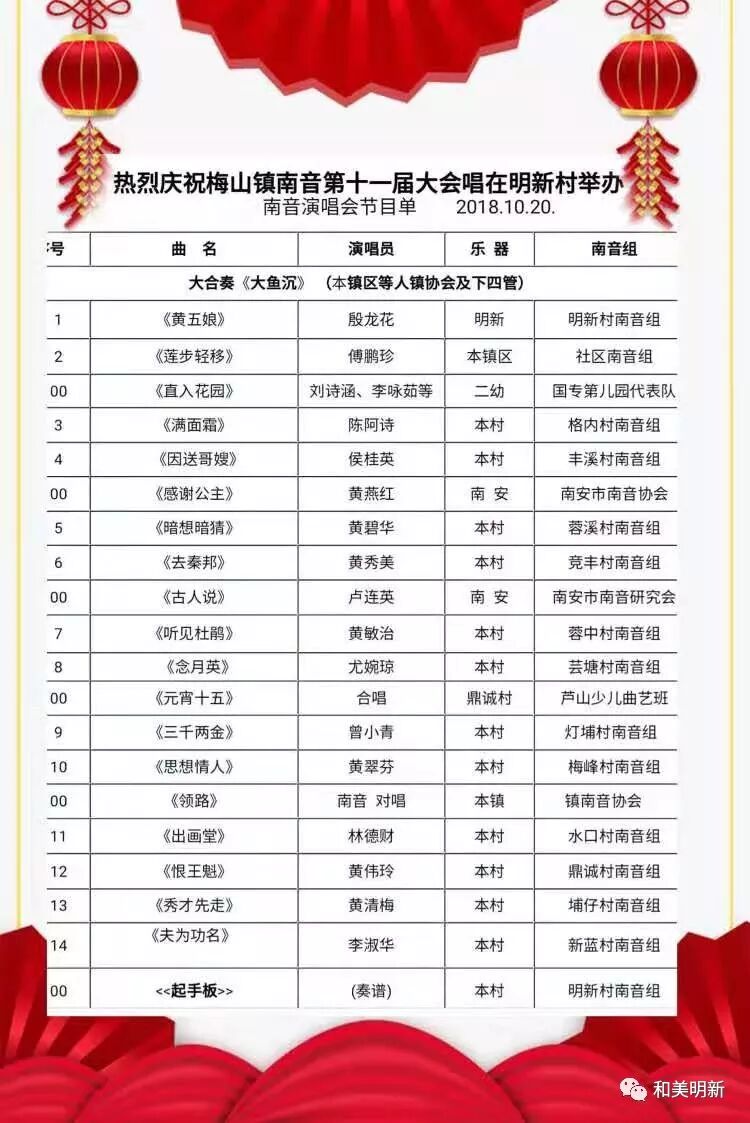 ? 梅山镇第十一届南音大会唱表演节目单