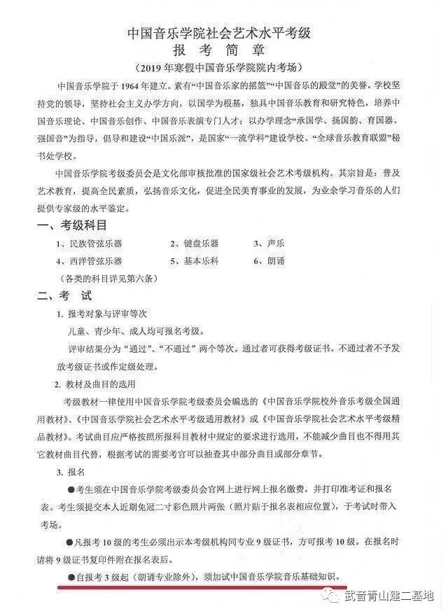 另外,2019年的寒假,中国音乐学院公布了中国音乐学院社会艺术水平考级的报考简章如下: