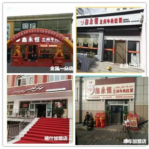 鑫永恒加盟店:陕西渭南店、新疆米泉店、新疆奎屯店、新疆伊宁市西大桥店、新疆伊宁察县店、新疆伊宁市师范店、新疆伊宁市天马转盘店、甘肃张掖店、甘肃金昌店、甘南合作店、山西临汾店、新疆沙湾店、新疆喀什店、定西岷县店、武威民勤店、乌鲁木齐通嘉店、金昌恒昌店、渭南解放路店、乌鲁木齐国际机场店、乌鲁木齐卡子湾店、河南驻马店市店、山东临沂店、乌鲁木齐铁路局店、新疆阿克苏库车店、兰州火车站店等。