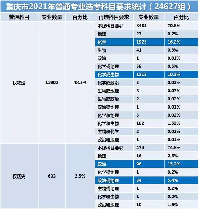重庆已于8月正式发布《重庆市教育委员会关于公布2021年拟在渝招生普通高校招生专业(类)选考科目要求的通知》,对各大高校所有专业的首选科目和专业科目提出明确要求。