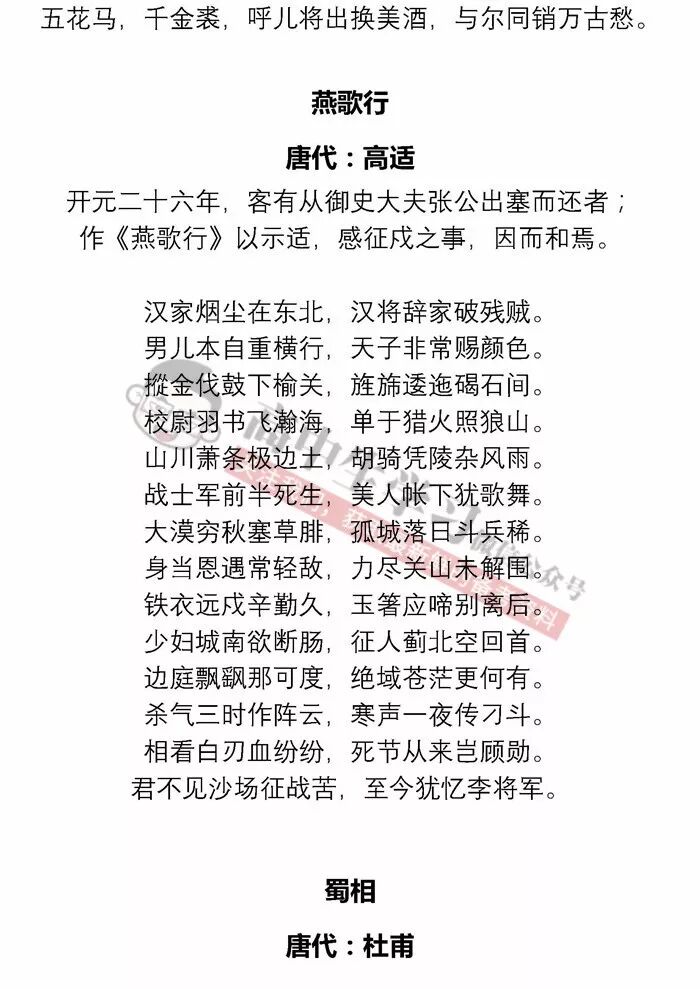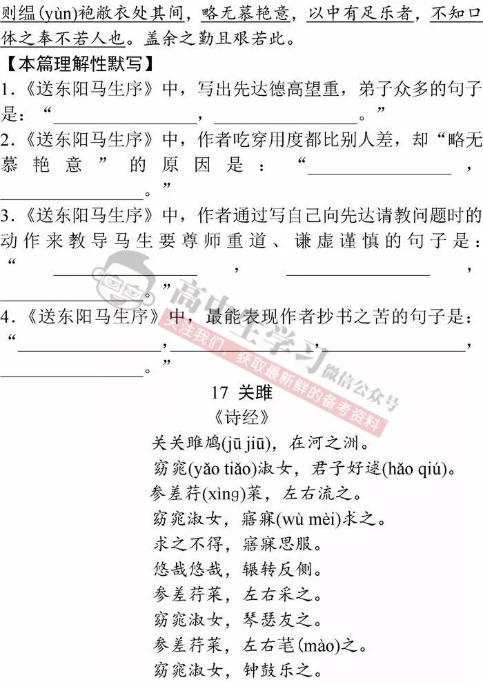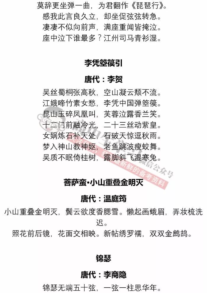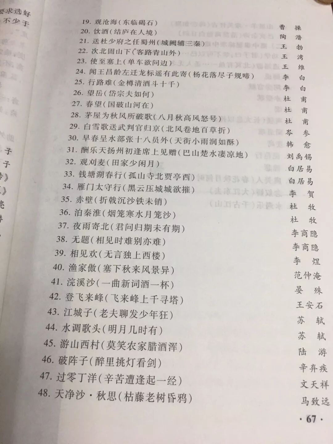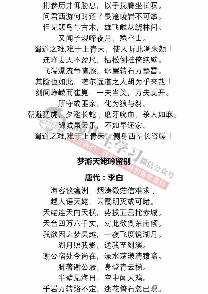 一、第二批综合改革试点省份(北京、天津、山东、海南),按照《普通高中2017届语文学科教学指导意见》,背诵篇目为58篇,包括文言文必修8篇、文言文选修Ⅰ10篇和诗词曲40首。