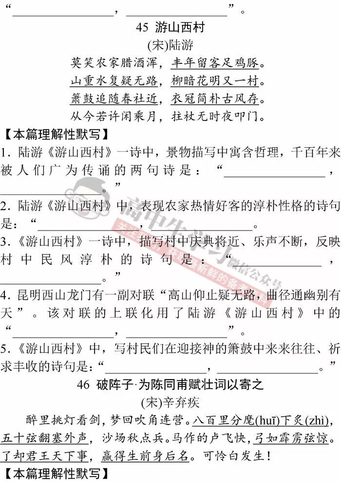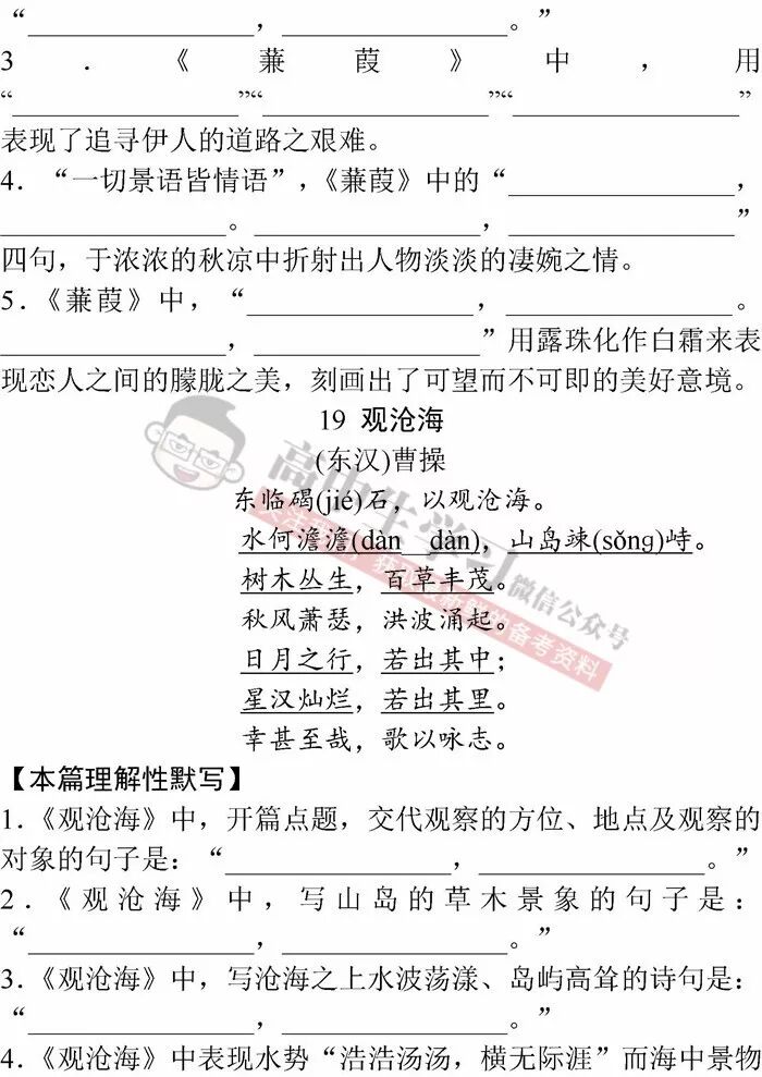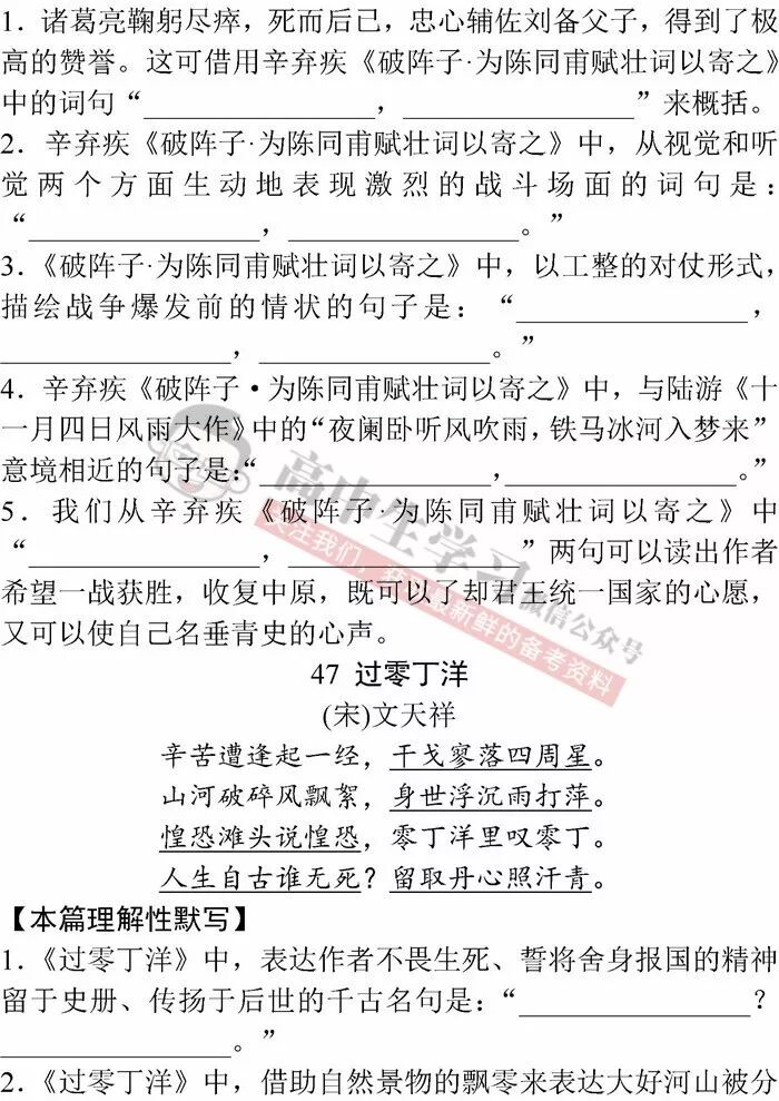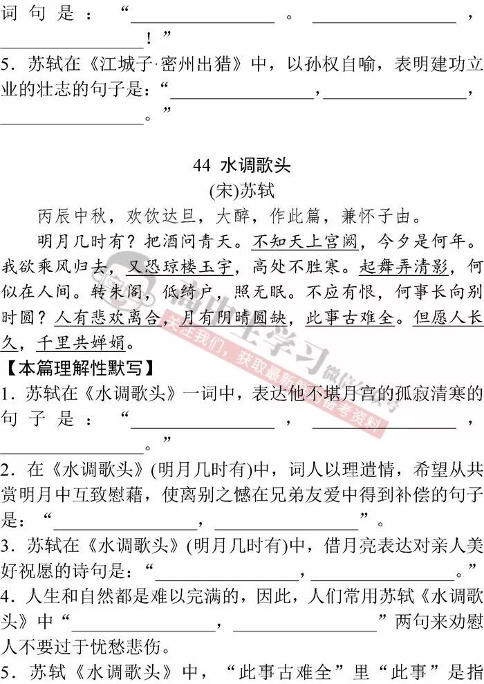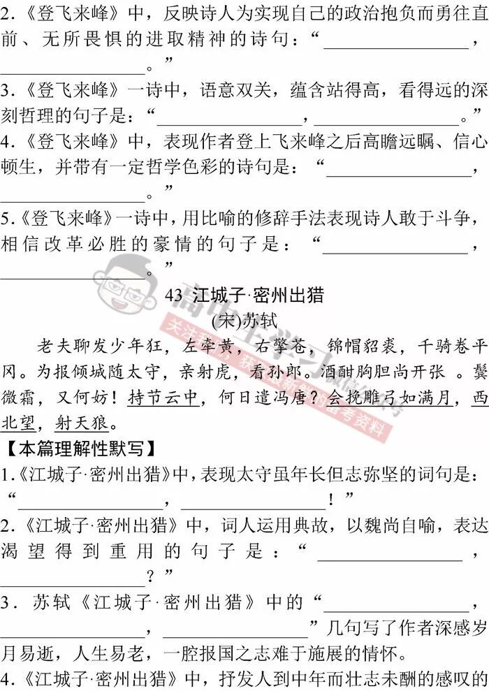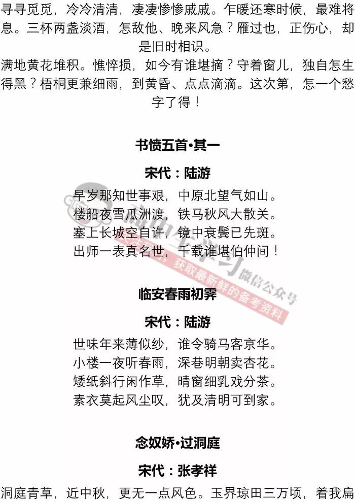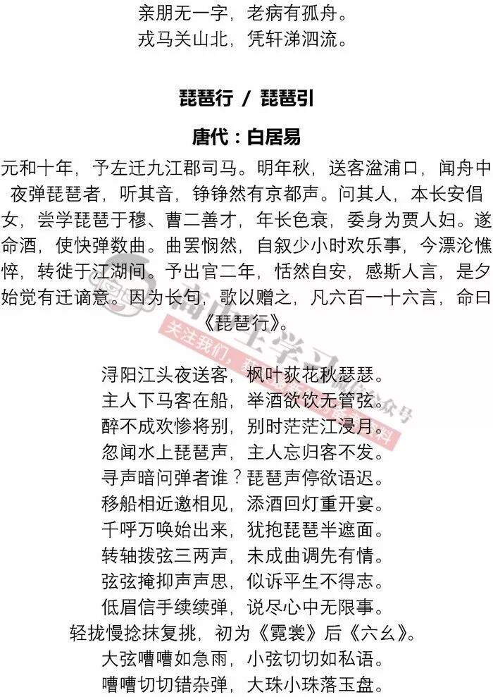 二、第三批综合改革试点省份中使用《普通高中语文课程标准(实验)版》的,参照《2019年普通高等学校招生全国统一考试大纲说明》,背诵篇目为64篇,包括义务教育课程标准7--9年级推荐篇目50篇和高中课程标准(实验版)推荐篇目14篇。