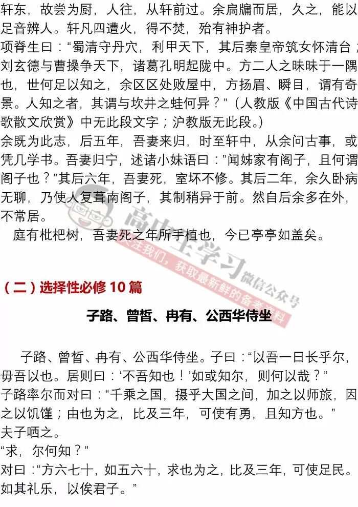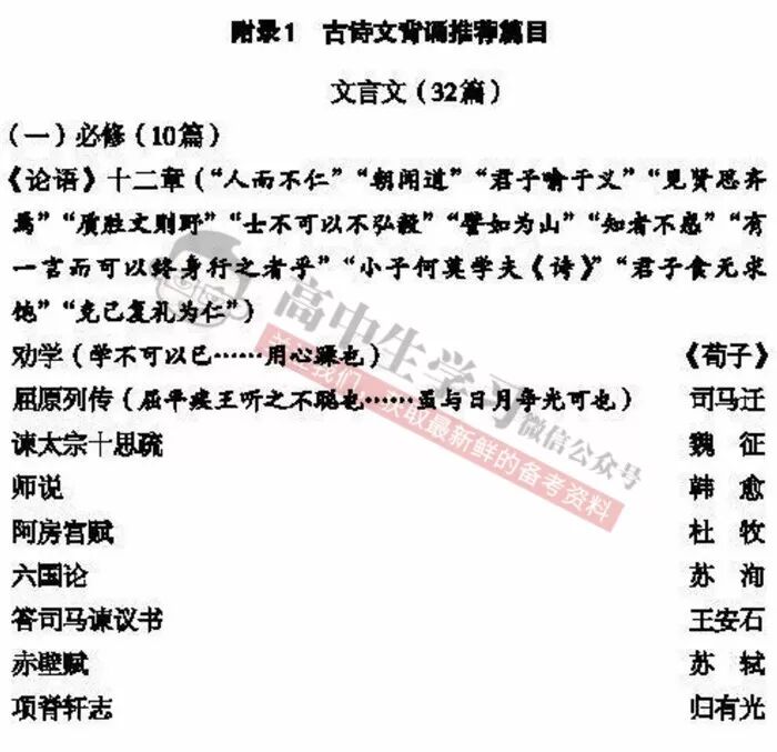 三、第三批综合改革试点省份中使用《普通高中语文课程标准(2017年版)的,背诵篇目为60篇,包括文言文必修10篇,文言文选择性必修10篇和诗词曲40首。