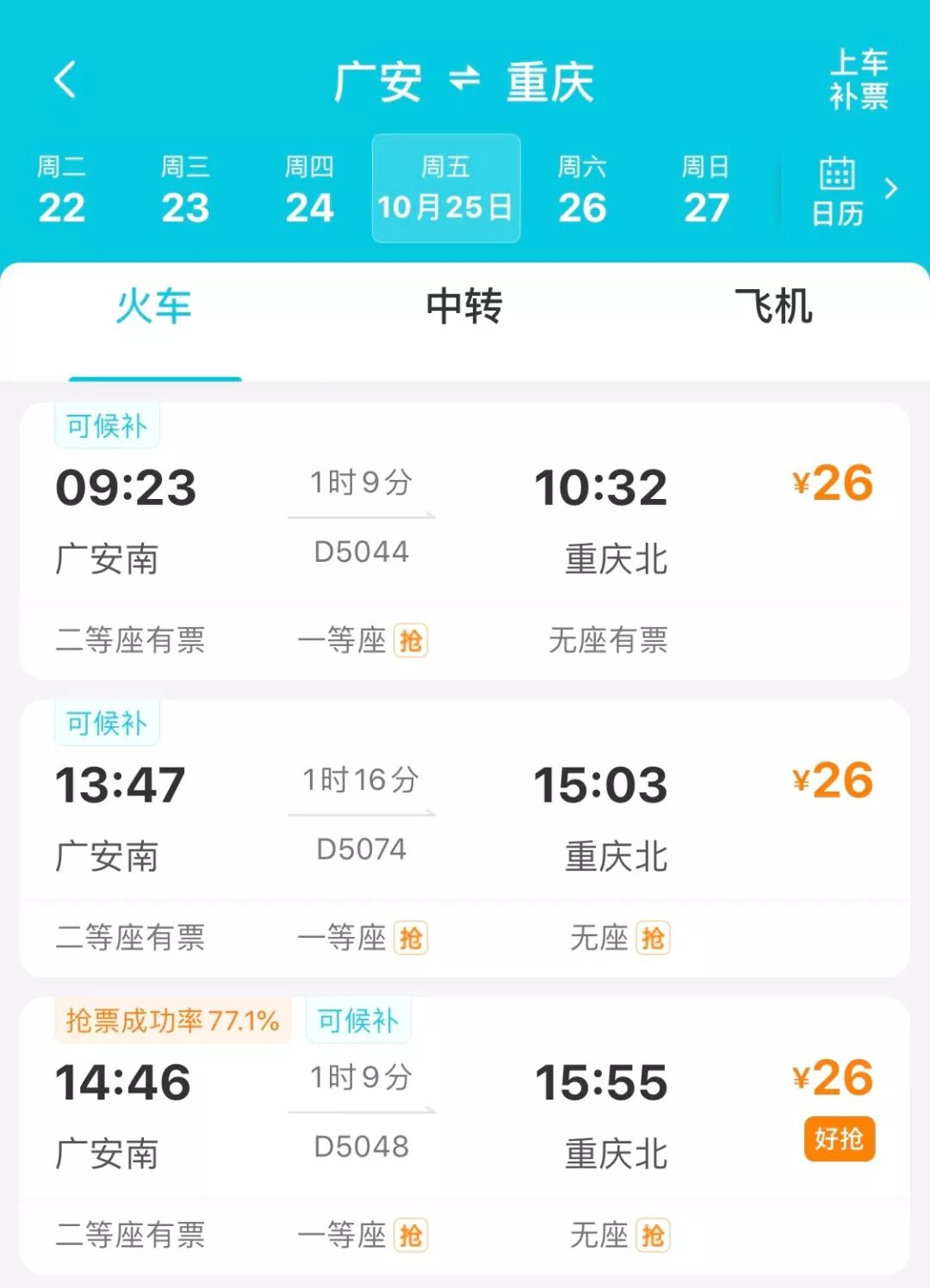 二等座26元