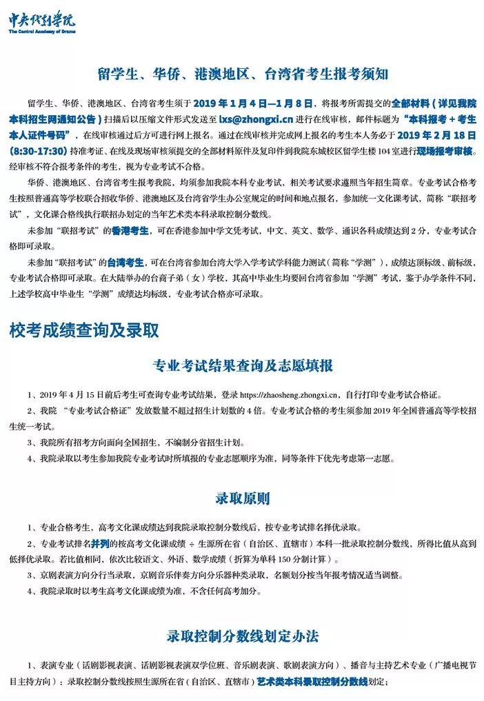 名校攻略 | 中央戏剧学院2019年招生回顾及录取分数线