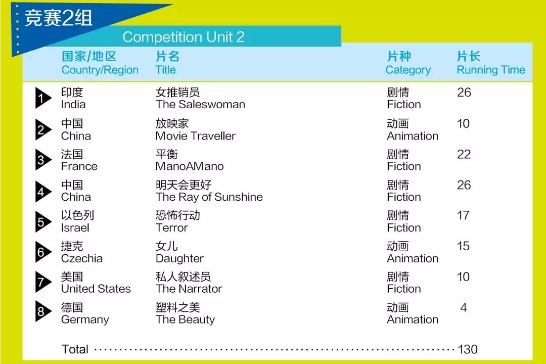 竞赛2组的8部短片中来自7个不同的国家,由5部剧情短片和3部动画短片组成。