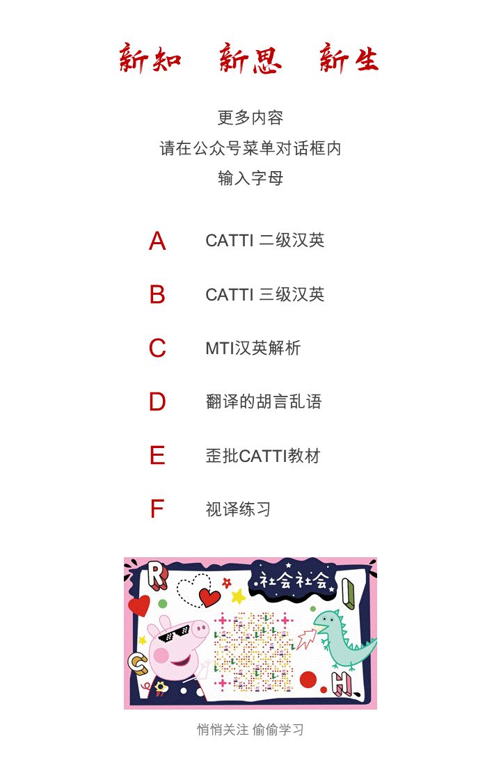 玩笑话。上周实在太忙,所以没时间更新。催也没用,所以老实等着就可以。这个公众号从零起步,没指望着成为大V或者百万流量的平台。顺手写点资料,帮助更多人了解翻译和学习翻译。而已。