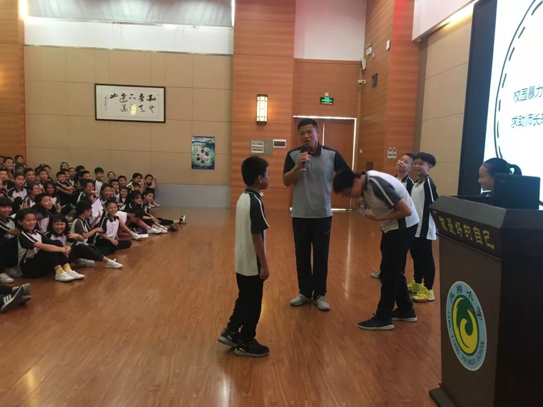 为进一步净化校园环境,杜绝校园欺凌行为,促进学生身心健康发展。2019年10月11日,六年级的全体同学参与了“防校园欺凌”教育讲座。