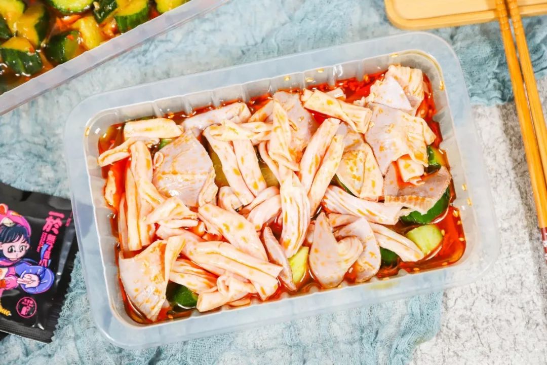 必pick名单NO.1的麻辣无骨黑凤爪,采用湖南的红油腌制,配上黄瓜撒上芝麻,麻辣又鲜香。
