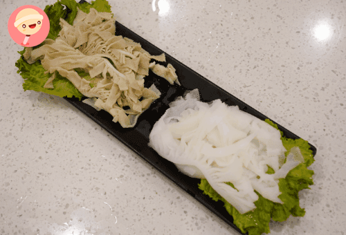 猪红 豆腐 豆泡 豆皮 金针菇 高丽菜 香菜 葱