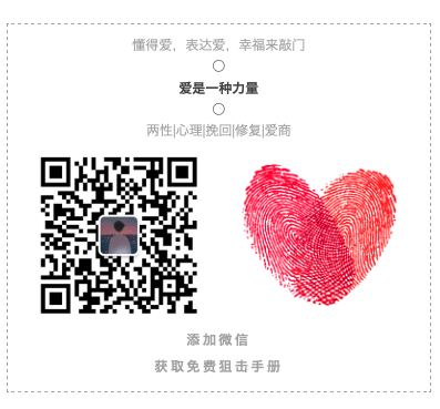 如果你对你们感情仍然有不舍和遗憾,请添加下方二维码老师微信,为你们的感情用尽全力,我们将从科学,有效,准确的角度挽回,通过恋爱心理学,男性心理学,婚恋心理学,生理学,社会心理学等进行精准的分析,制定个性化的方案,及时,快速,有效的帮助你挽回你的爱人。