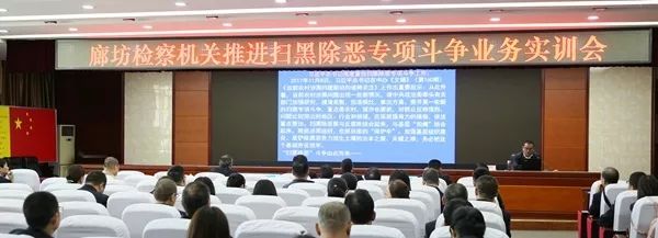 为认真贯彻落实全国刑事检察工作会议精神,进一步提升全市检察机关捕诉一体办案模式和内设机构改革背景下办理黑恶案件的水平,为推动扫黑除恶专项斗争向纵深发展贡献更多检察力量,10月21日,廊坊市检察院召开全市检察机关推进扫黑除恶专项斗争业务实训会议。
