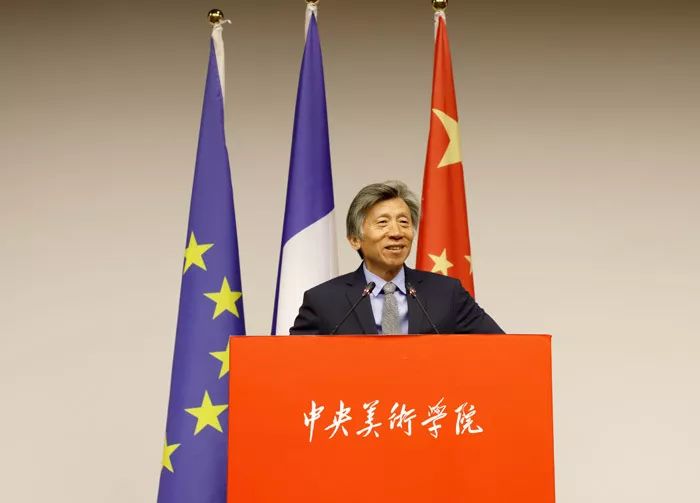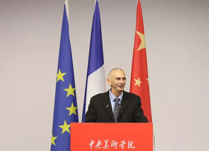 法国驻华大使馆高等教育与人文社科研究合作专员杜雷(Jean-Fran?ois DOULET)在发言中对中法学院的成立送上最诚挚的祝福。他表示:“我相信,这项重大的教育项目将很快证明其自身的巨大价值。法国合作伙伴的声誉是建立在中央美术学院这个伟大而美丽的机构影响之上的,而其教育背景几乎是完美的。”回溯历史,今年正好是留法勤工俭学运动一百周年,明年是北京中法大学成立一百周年,这之后的2021年是里昂的中法大学成立一百周年。“一百年来,中法两国共同支持大学合作项目,重视知识的传播,以及面向世界的多元化教育。中央美术学院(中法)艺术与设计管理学院是第14家获得中法两国认可的学院,它再次印证了中法两国在专业化领域合作的不断深化。而作为这一历程中的第一批中法学院新生,你们将成为中法学术交流的使者,继续谱写中法友谊与中法合作的新篇章。”