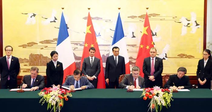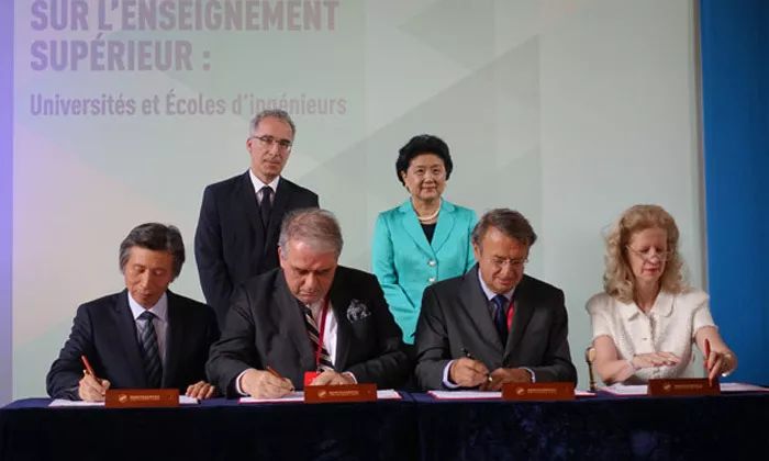 资料图片:2016年6月30日,中国国务院副总理刘延东(右后)与法国教育部官员(左后)见证双方代表签署中央美术学院中法艺术与设计管理学院合作协议