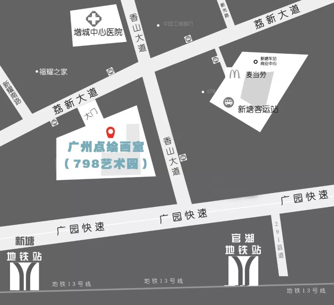 2.地铁:广州地铁 13号线新塘站,D2出口换乘增城101到新塘客运站下车,步行走过对面马路即到点绘画室(798艺术园)