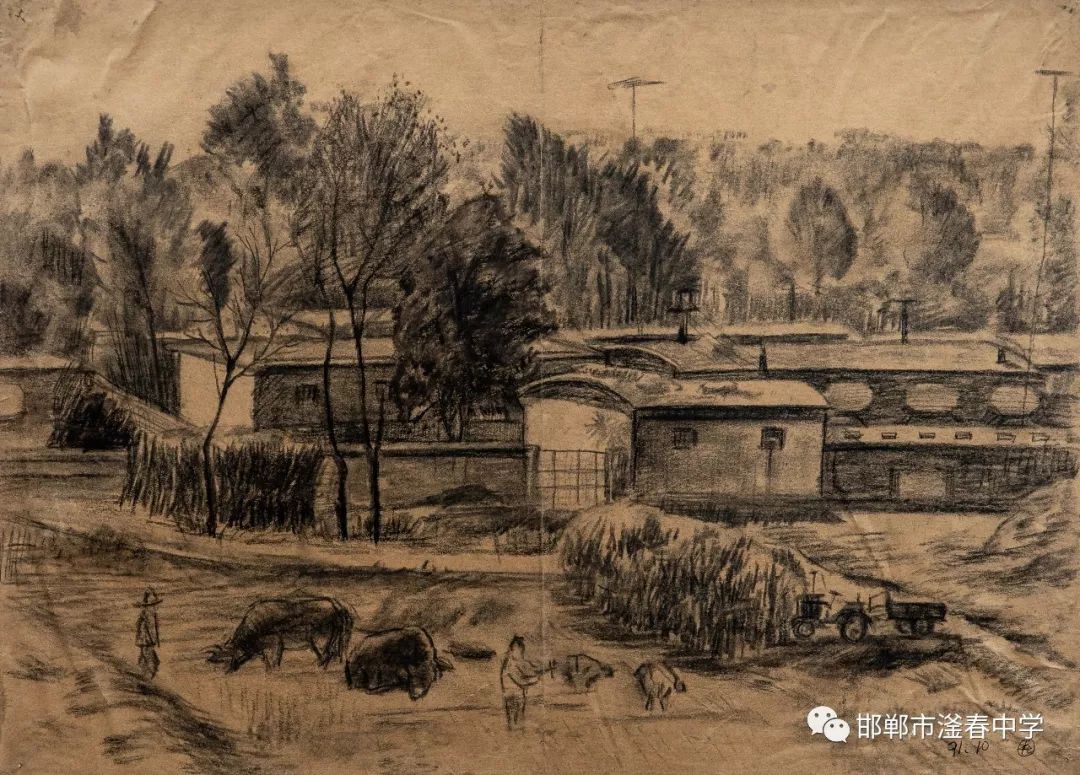 白文忠,风景,纸本炭笔,57cm×42cm,1991年