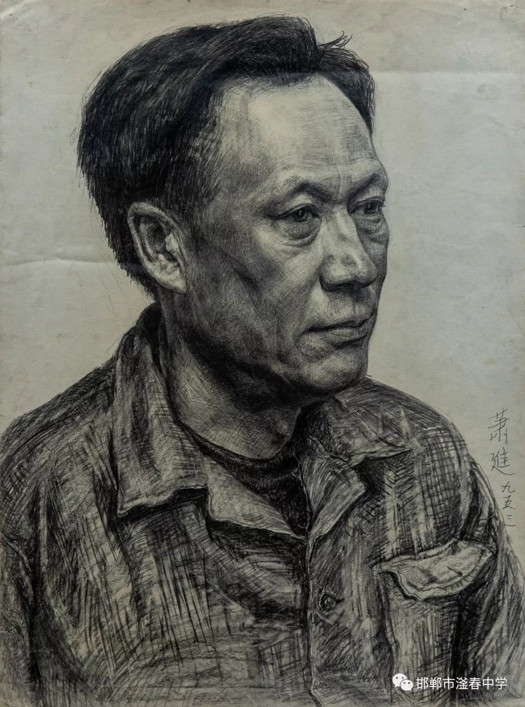 林笑初,头像,二年级,纸本铅笔,43.5×58,1995年