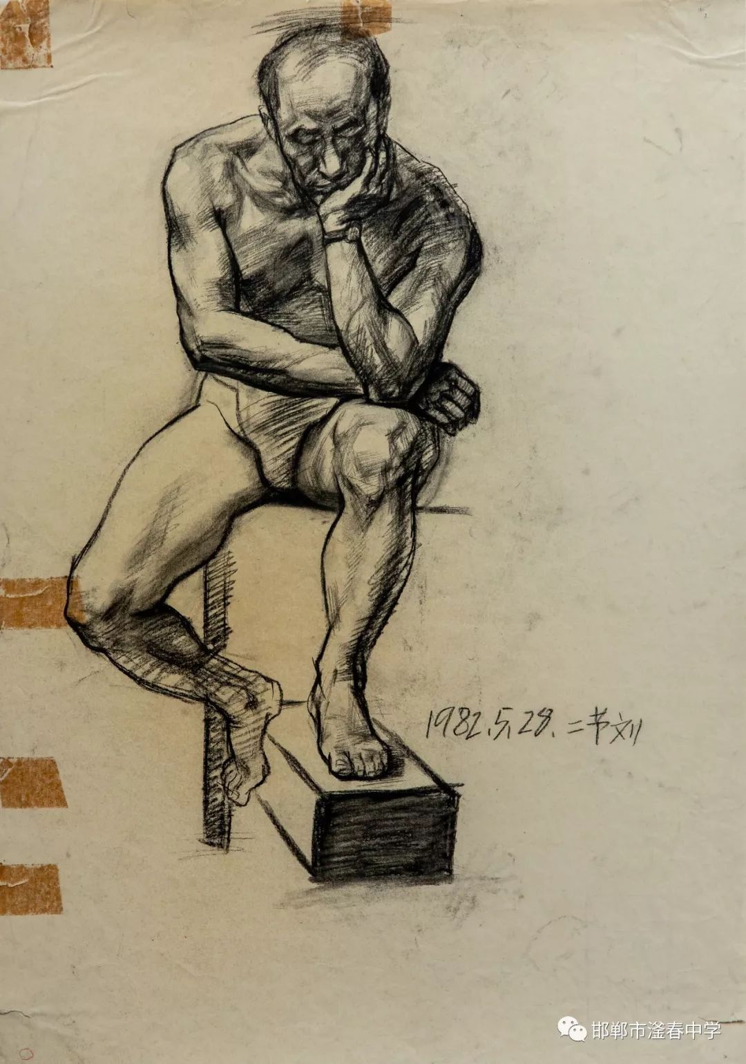 王浩,人体,四年级,纸本炭笔,52cm×56cm,1982年