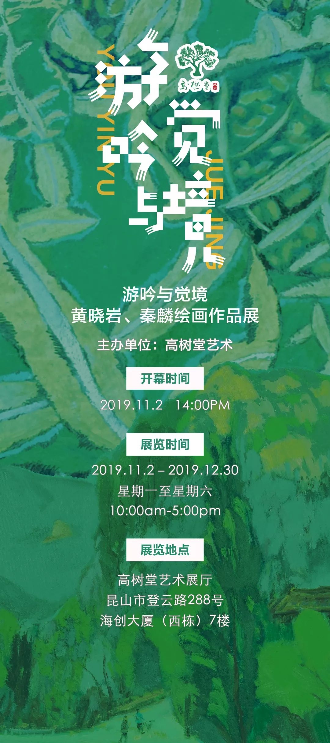 高树堂艺术将于2019年11月2日(周六)下午2点举办:“游吟与觉境——黄晓岩、秦麟绘画作品展 ”开幕仪式,展览时间至2019年12月30日。本次展览作为最能体现艺术生态的风向标,也最直接反映了两位昆山艺术家的创作动态,可以直观了解艺术作品的审美觉境。