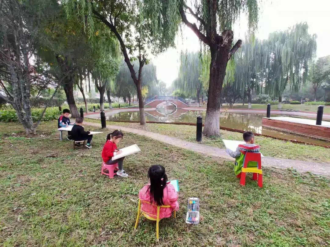 周末的绘画采风课,孩子们画的很开心,玩的很开心,与大自然亲密接触, 感受不一样的绘画课。
