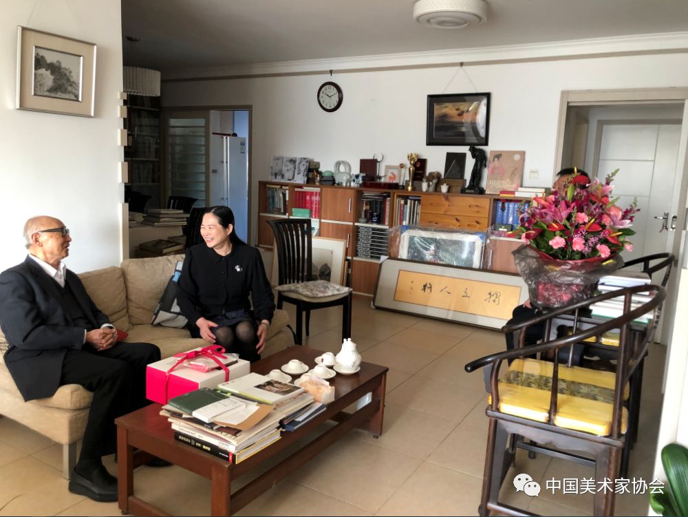 10月21日上午,在中国文联荣誉委员邵大箴先生生日之际,中国美术家协会分党组副书记、一级巡视员陶勤代表中国文联、中国美协专程探望邵大箴先生,为邵先生送上鲜花和生日蛋糕,感谢其对中国美术事业所做的贡献,并祝邵先生生日快乐、福寿安康。