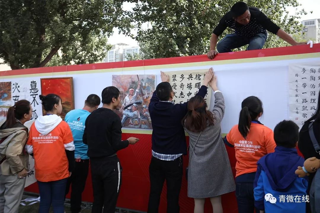 10月20日上午,2019中国青少年书法美术征集展示活动之百米长卷主题创作在北京市少年宫举行。