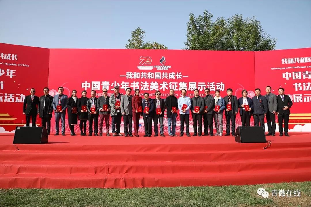 由团中央宣传部文化处处长吕通义,全国政协礼堂艺术馆馆长高良,国家文化和旅游部影视文化交流中心主任李金龙,中国文联美术艺术中心副主任、中国美协理事梅启林,北京市教委体育卫生与艺术教育处处长杨志强,中国青少年儿童发展服务中心媒介与教育中心主任,中国青少年宫协会部长季琳,北京学生活动管理中心党委书记秦蕾,七位现场领导嘉宾分别为140名百米长卷创作选手颁发了荣誉证书。