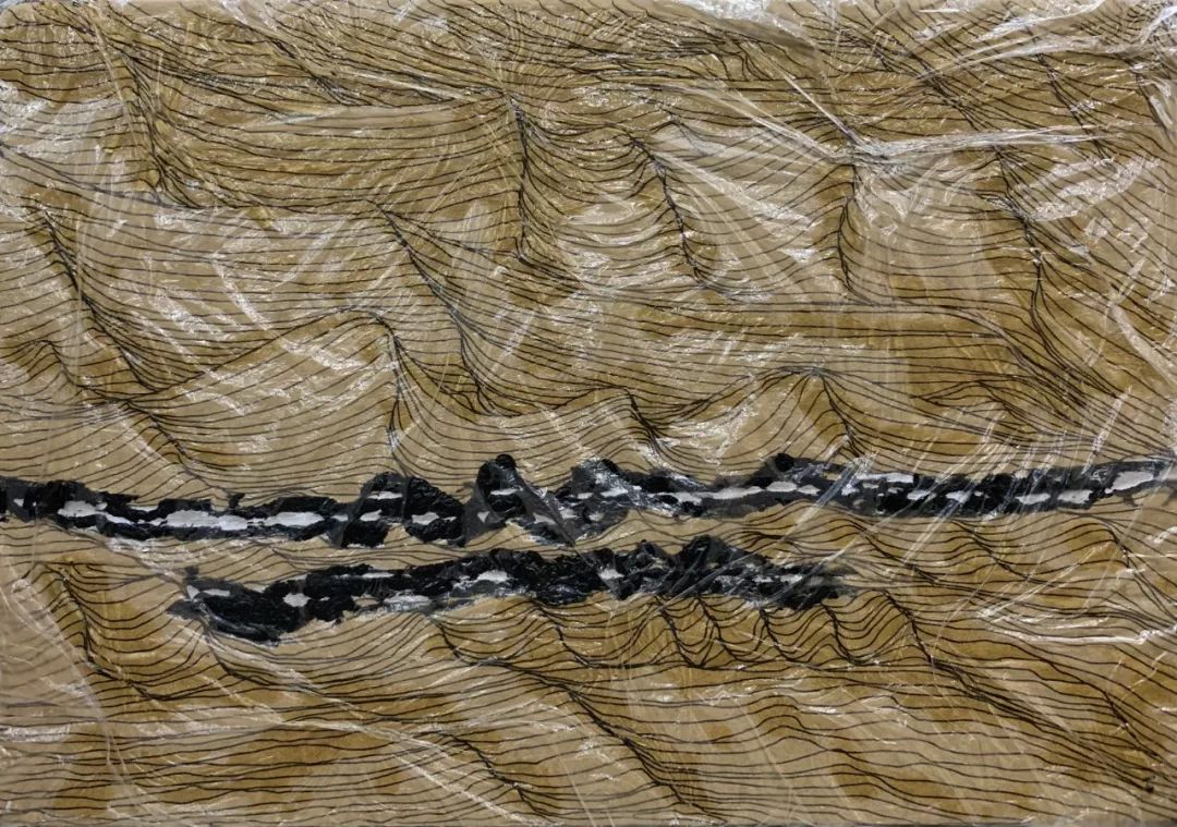 范庆华《关于水域的故事NO.7》19.5x28.5cm 纸板、丙烯、油墨、中性笔、塑料膜、胶水