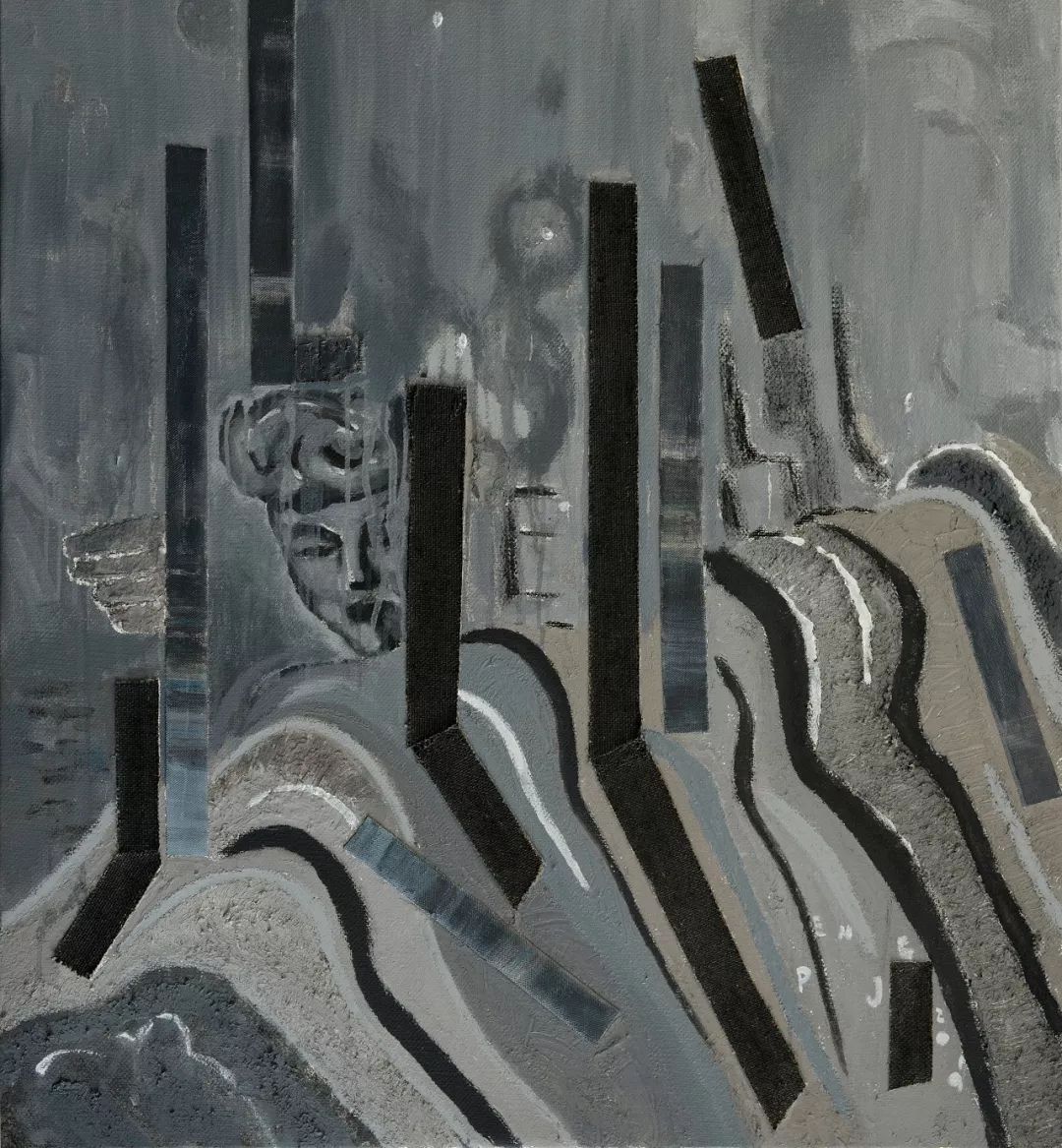 彭剑 过河的铁轨 110×100cm 丙烯综合材料 2019