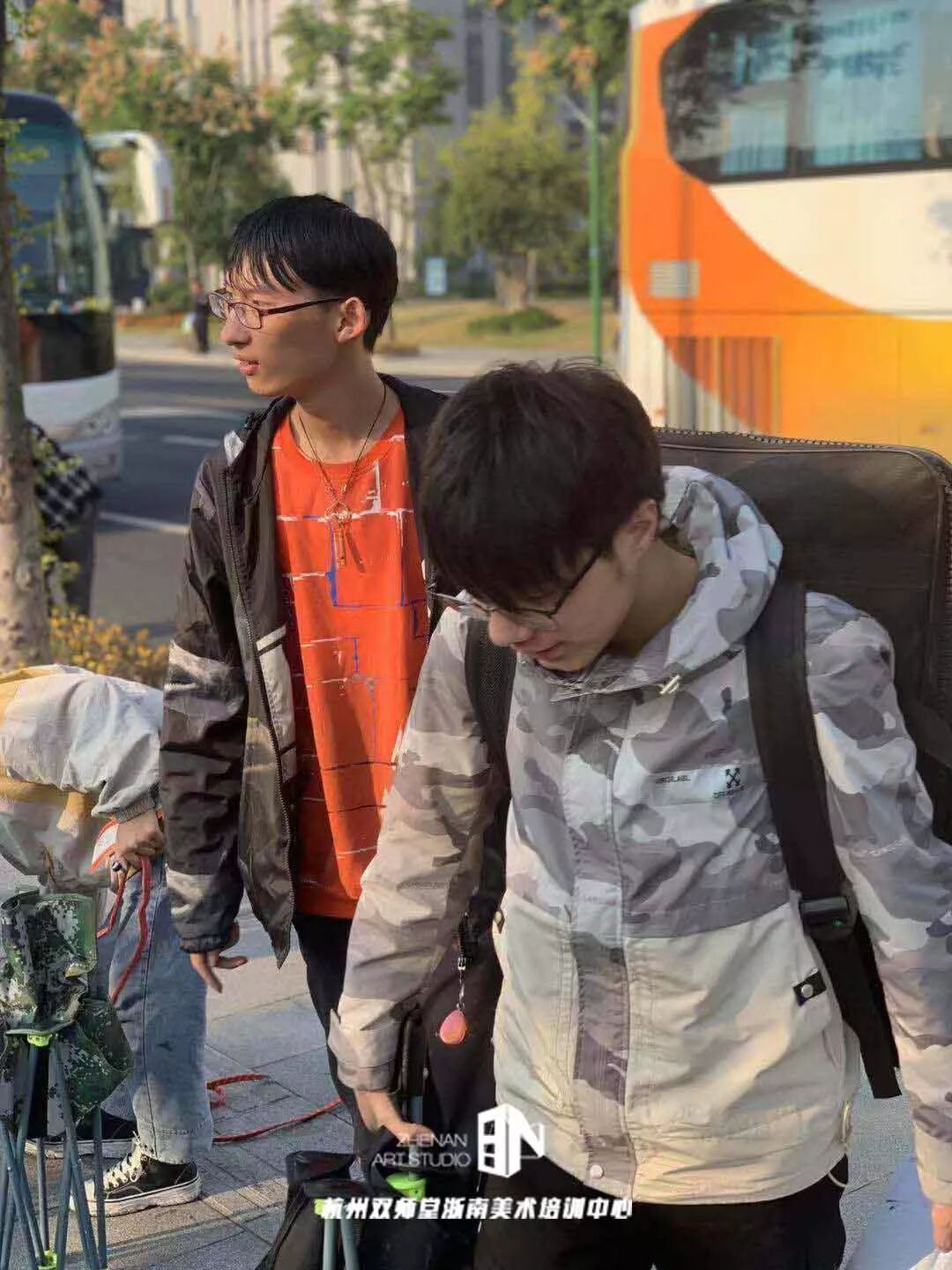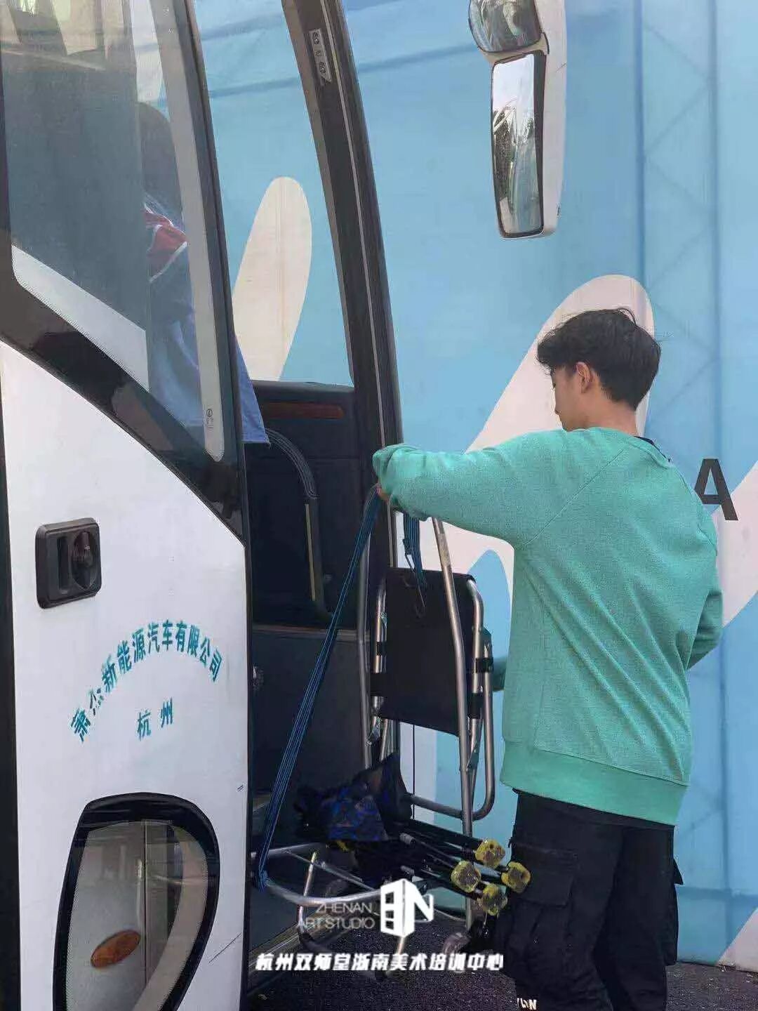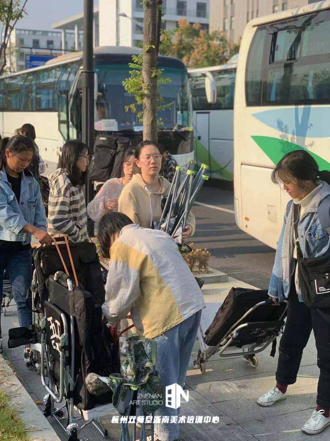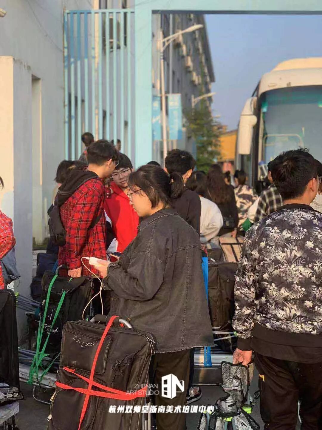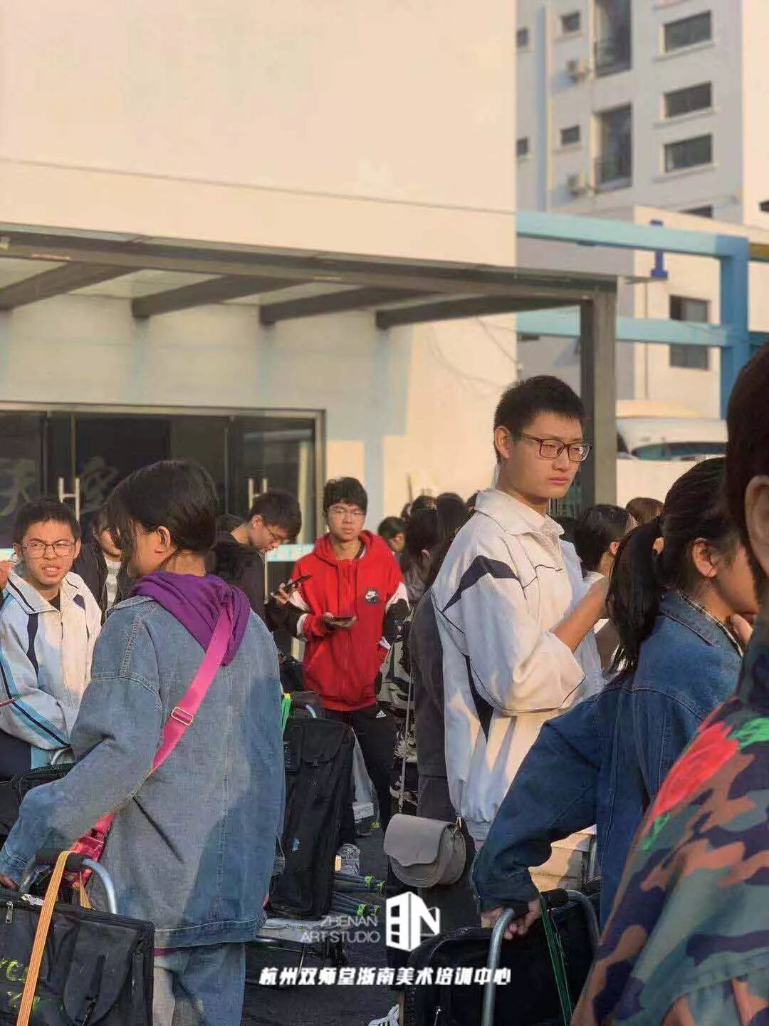 清晨6:40天气微亮,浙南学子们带着画材用具已经开始动身即将启程出发到模拟联考现场。